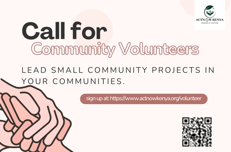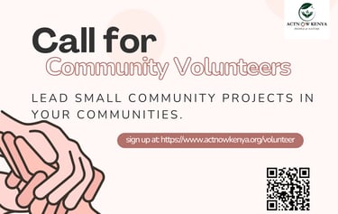 To strengthen our community engagement and deepen local impact, we are inviting passionate and committed individuals to join ACTNOW KENYA as Community Volunteers.